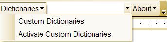 Custom DictionariesTwo things that are very useful to editors are custom dictionaries and an exclude dictionary. But creating a custom dictionary and adding words to it can be difficult. The Dictionaries macro makes it easy. The EditTools toolbar now includes two Dictionaries dropdowns as shown in the image below (arrows).
